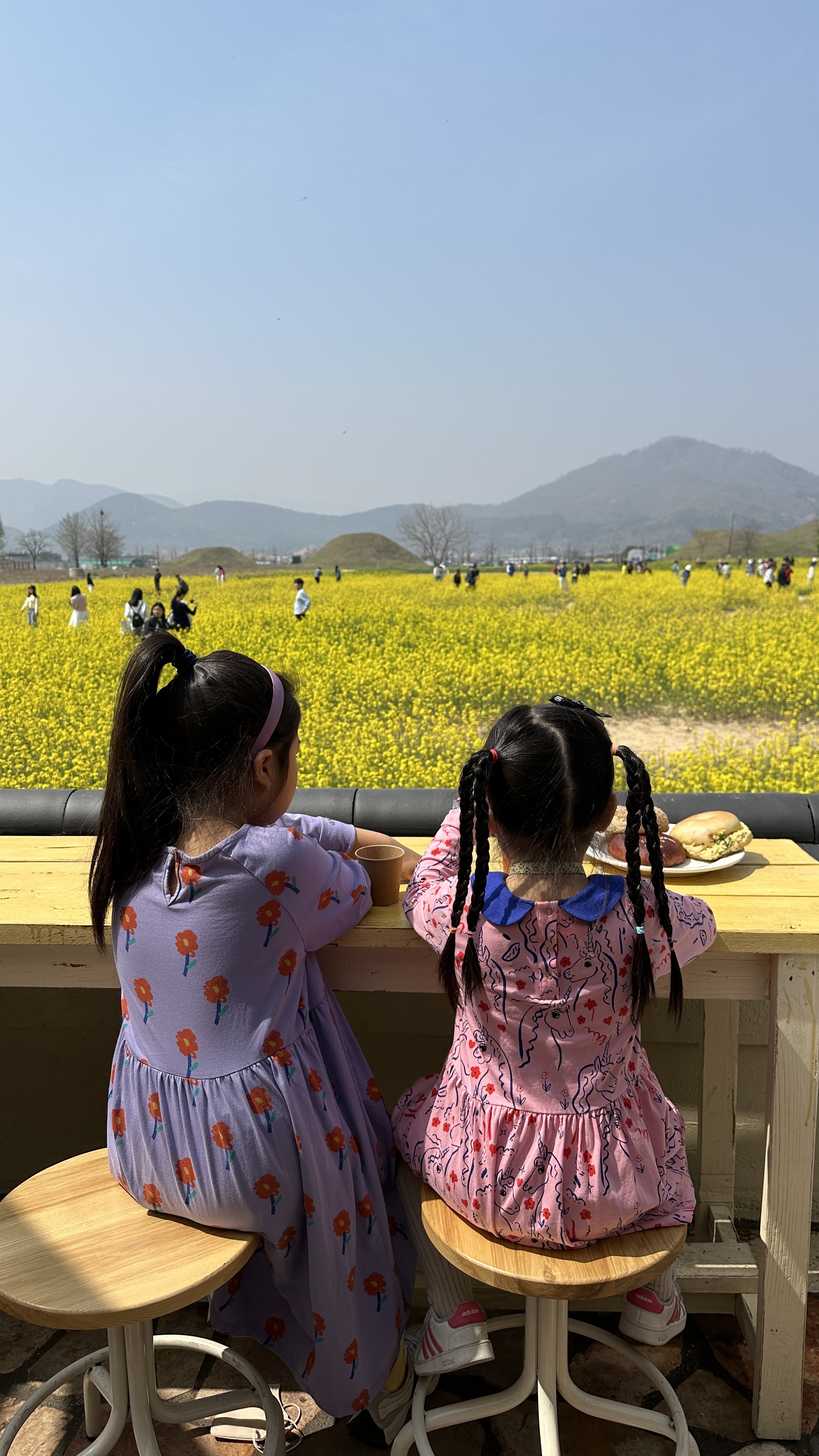 처음에 유채꽃밭 뷰 앞에 앉았는데 햇볕이 너무 내리쬐서 안쪽으로 자리를 옮겼습니다.