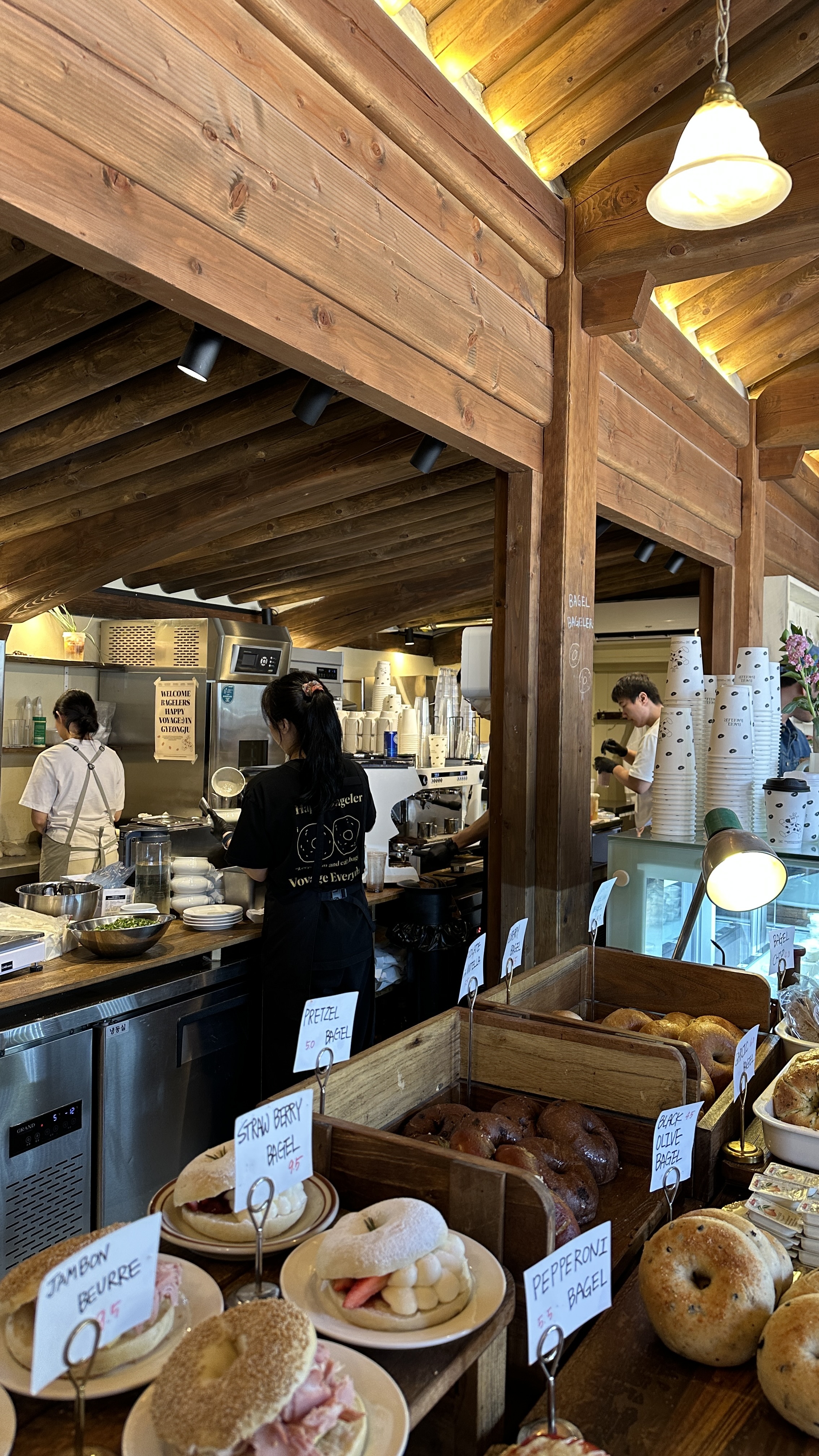 베이글 골라 담고 음료랑 주문 후에 조금 기다린것 같아요. 사람이 워낙 많으니까 기다림은 당연한 것..