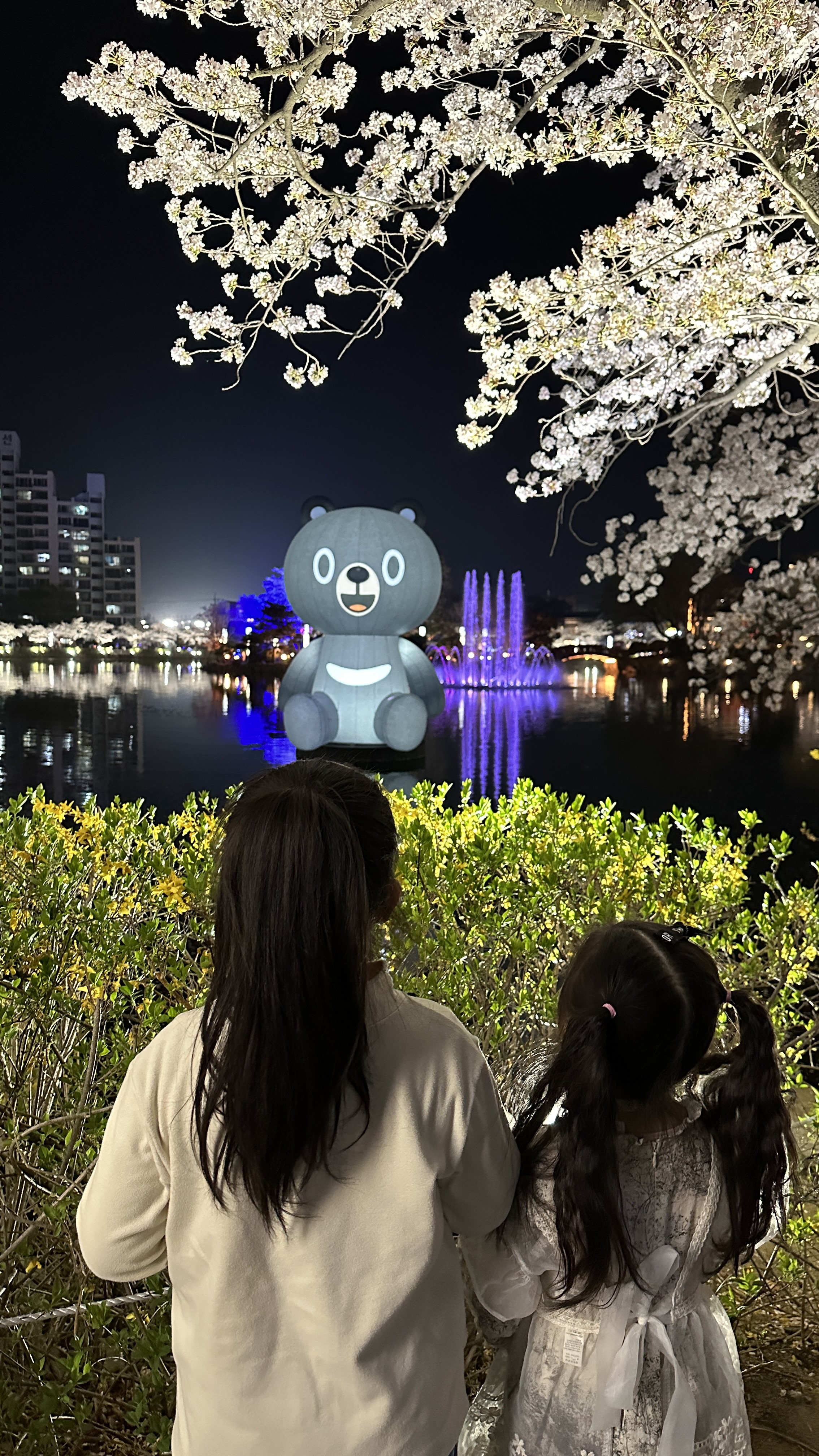 오후 6시 반쯤 도착해서 찍은 사진입니다. 이때만 해도 사람이 엄청나게 많지는 않았는데 노점상들도 즐비해있고 연화지 벚꽃 음악회를 하고 있었어요.