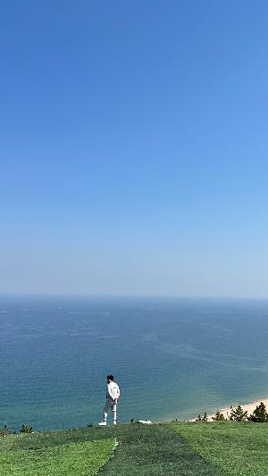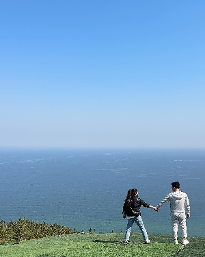 올라와서 바다를 보며 사진을 찍었습니다.