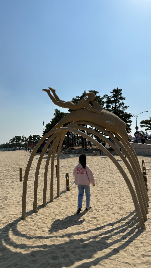 해수욕장에 노상 공영주차장에 겨우겨우 주차를 하고 내려다보니 모래사장에 작품이 전시되어 있었습니다.