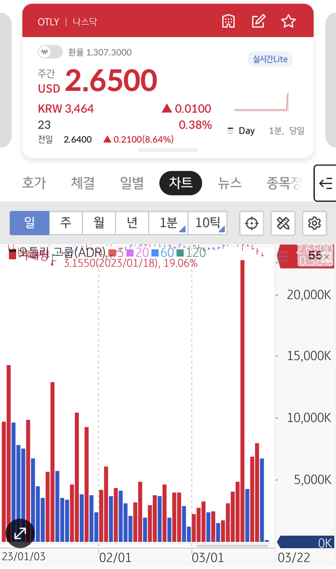 현재 오틀리의 주식은 2.65달러에 그칩니다. 이 주가 자체도 오르기 시작한 주가이고,