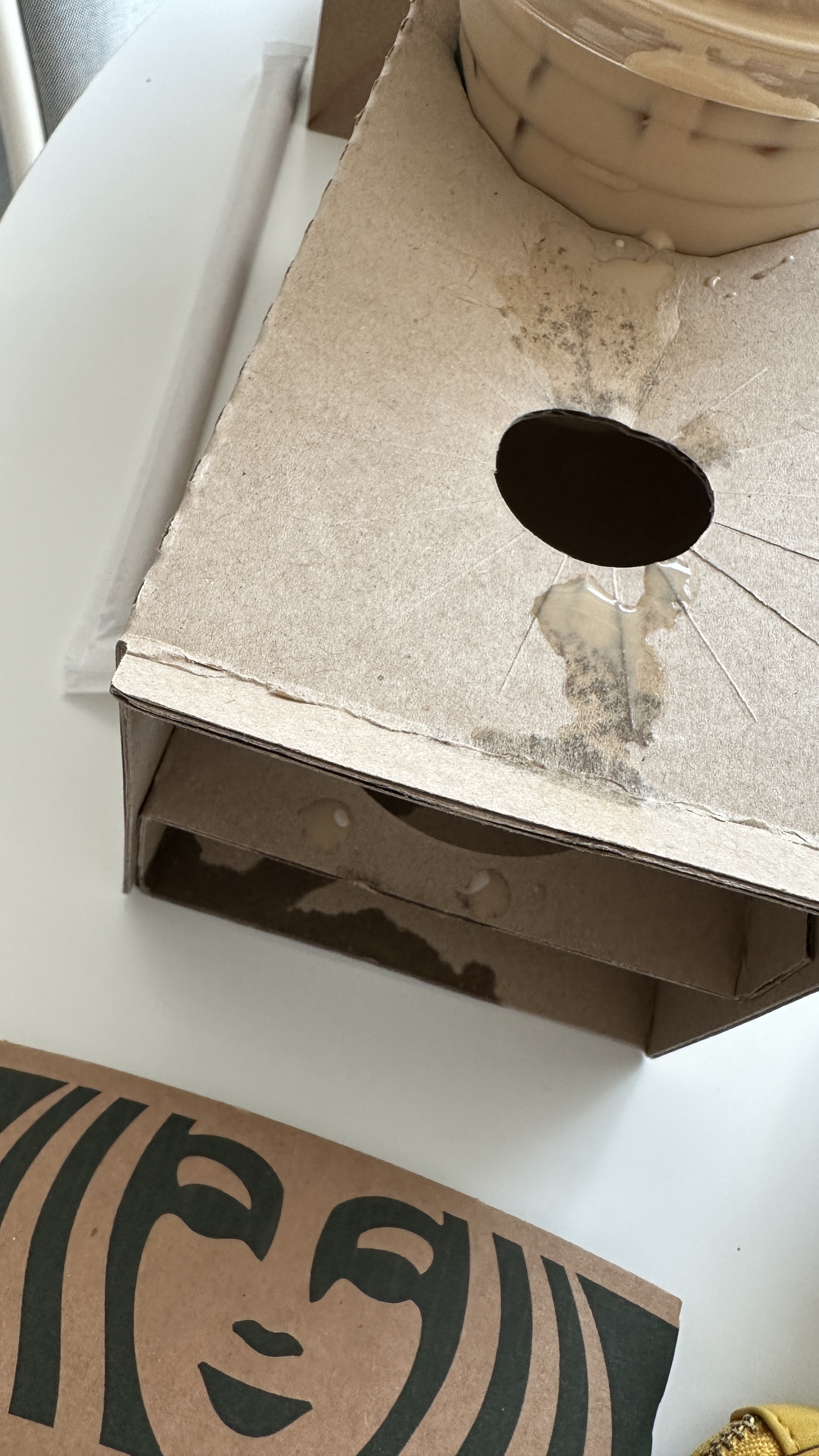 아무래도 일반 매장은 위에 한 번 더 매직랩으로 싸서 음료가 흐르지 않도록