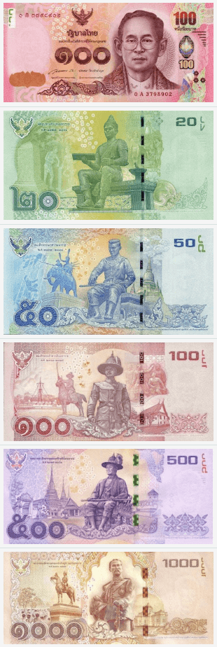 지폐 10B, 20B, 50B, 100B, 500B, 1000B